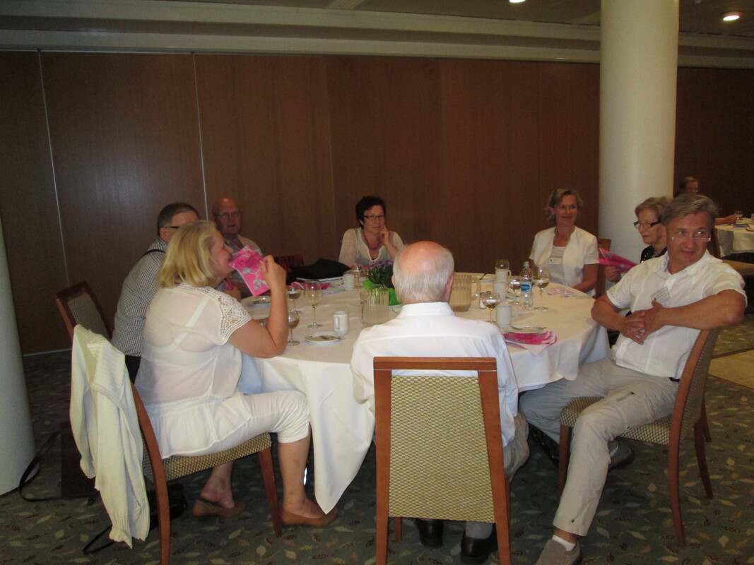 Hyvää ruokaa ja ohjelmaa hyvässä seurassa Hämeenlinnan sukujuhlilla. Lauantaina 26.heinäkuuta herkuteltiin Kylpylähotelli Aulangon Tawastisalissa erinomaisella päivällisellä. Laulettiin yhteislauluja ja kuunneltiin Matti Oikarisen musisointia ja Pentti Haverisen tarinointia. Urheilijat saivat pokaalinsa ja mitalinsa voitettuaan perinteisessä sukujuhlan tikka-ja kuulakilpailuissa sukulaisensa. Arpajaisissa oli valtava määrä voittoja ja se kannustikin Haveriset satsaamaan kolme euron hintaisiin arpoihin. Grilli, öljyvärimaalaus ja monet muut onnenpoikien nostamat arpavoitot päätyivät Hämeenlinnasta Haveristen koteihin, ympäri kauniin ja helteisen Suomenmaan. |