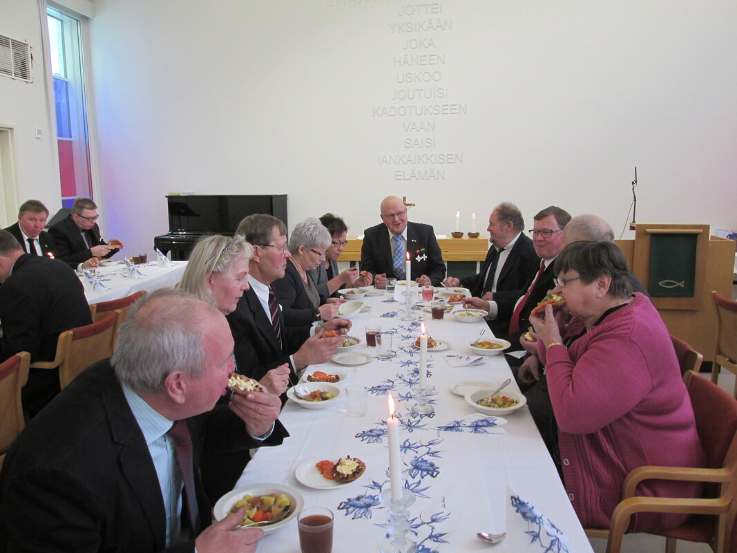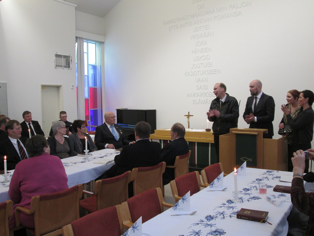 Kirkkoherra Timo Suutarin lisäksi juhlassa puhuivat läheiset ja ystävät. Puheiden, ruokailun ja kahvin lisäksi juhlaa maustoivat myös musiikkiesitykset.