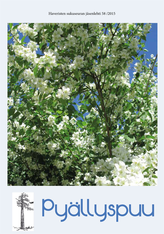 Ulkoasuaan iloisemmaksi ja värikkäämmäksi kohentanut Pyällyspuu ilmestyi Vapuksi. Jäsenmaksunsa maksaneet sukuseuran jäsenet kotimaassa ovat saaneet lehden postin jakamana keskiviikkona. Ulkomaille postitus vie muutaman ekstra päivän. Lämmin kiitos vappuaaton lumisesta maisemasta, Savon sydämestä ja mualimannavan läheisyydestä Pyällyspuuhun kirjoittaneille ja lehden lukijoille. Pyällyspuun toimituksessa olisi toiveena, että Haveriset lähettäisivät tarinoitaan, kuviaan, resepetejään, runojaan ja muisteluksiaan jälleen ensi kevään lehteä varten ympäri vuoden. Tarinat ovat pohjana myös sukukirjojen materiaaliksi, sukutaulujen ihmisten elämästä ja menneestäkin ajasta kertovina. Materiaalia voi toimittaa postitse, sähköpostitse tai vaikka tuomalla sukuseuran yhteiseen kokoontumiseen Kajaaniin heinäkuun lopulla.
