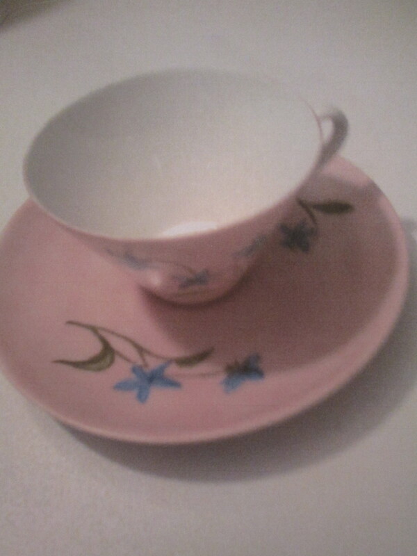 Hilkka Behmin vuonna 1969 maalaama posliinikuppipari, jonka hän on lahjoittanut 1970 Aino Töyrylle tämän 70-vuotislahjaksi.