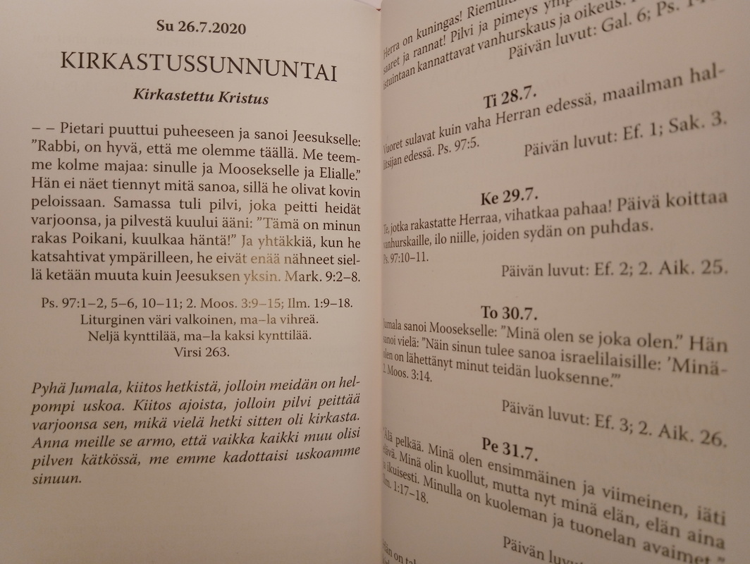 Virsi 263:6 "Kirkasta Kristus itsesi myös meille matkallamme. Voimalla kalliin sanasi valaise sieluamme, niin että kirkastettuina me saamme kerran taivaassa veisata kiitostasi."